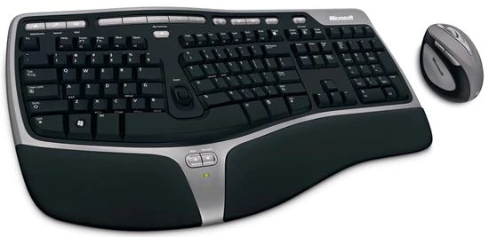 Už před léty jsem si koupil set Microsoft natural wireless ergonomic keyboard 7000 a byla to fakt špička. K ergonomické klávesnici (je třeba si na ni nejdříve zvyknout) je v sadě laserová myš. To je oproti běžné optické fakt bomba. Po zkušenostech jsem pak koupil klávesnici stejného, ale drátového provedení na další pc. Jediná nevýhoda je, že po letech (opravdu hodně letech) se ošoupaly písmenka, vyřešil jsem to tvorbou vlastních samolepek na popisovačce Brother Pt-9600 (bohužel sw nepodporuje Linux). A jinak vše OK.
