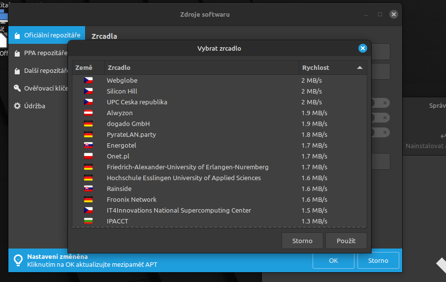 Jaký je nejlepší zrcadlo na aktualizace Linuxu? Co tam správně mít nastavené. Děkuji moc za odpovědi.