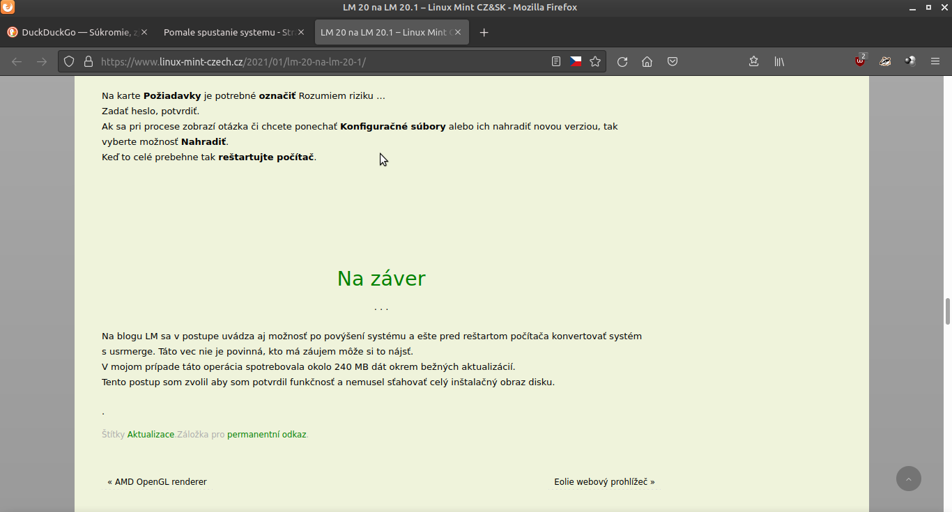 broukal píše: 25 led 2022, 09:42 Pri aktualizacii LM z 19.2 na 19.3 som ponechal stare konfiguracne subory prave koli nastaveniam ktore som zadaval rucne a koli vzhladu ktori poskytuje grub customizer, takze to vyzera ze tu bude nakoniec pes zakopany...