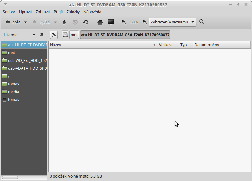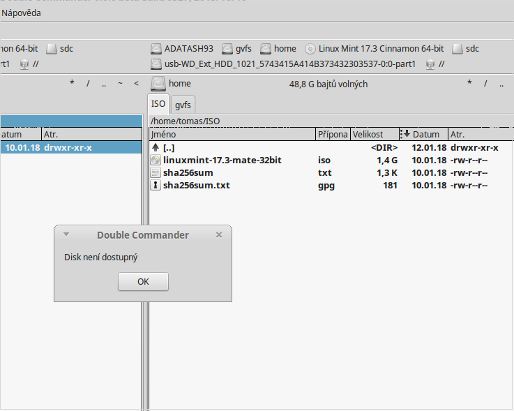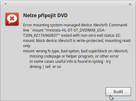 V Double com mám zařízení ata-HL-DT-ST_DVDRAM_GSA-T20N_KZ17A960837 v /mnt, pokud najedu na záložku zařízení v horní části,objeví se popisek Datový disk (21, ale pokud chci tohle zařízení klikem otevřít,objeví se okno Disk není dostupný.