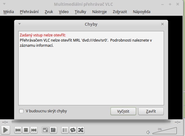 Ve VLC chci otevřít disk a výsledek toto