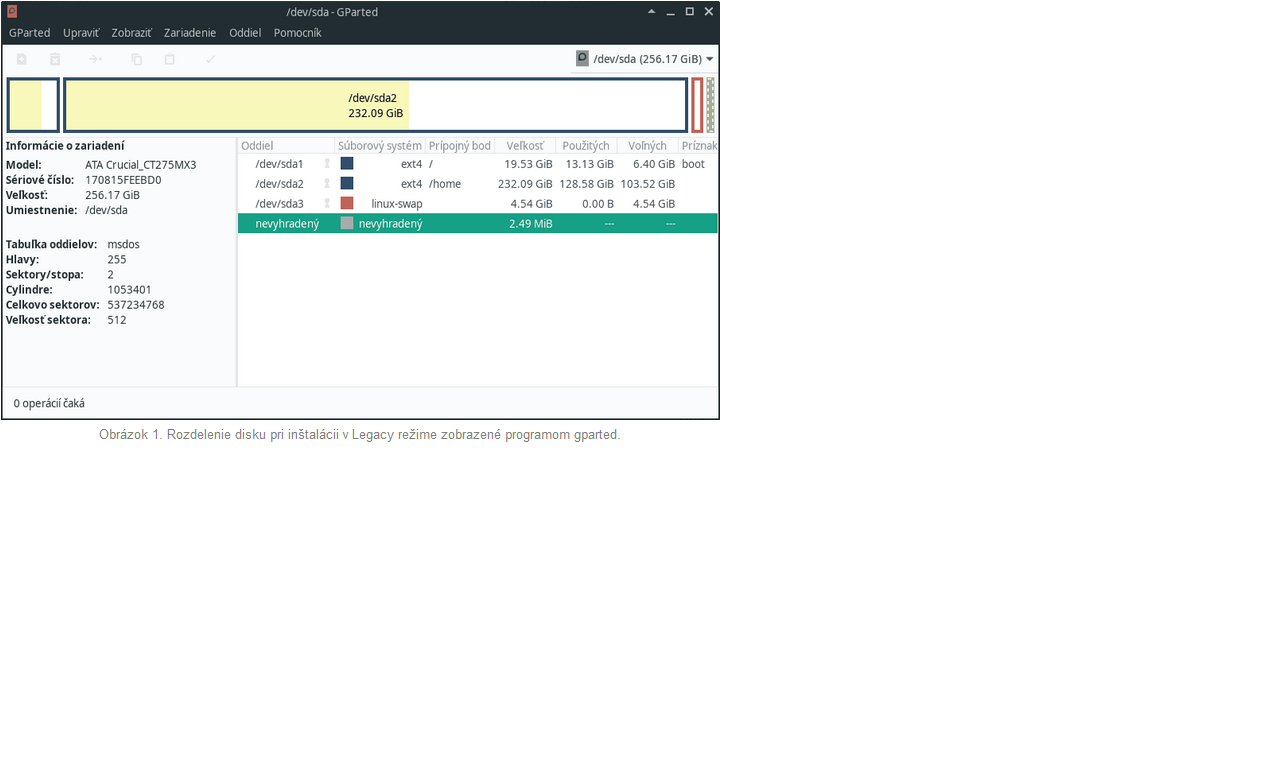 Super. Ešte detail - v Gparted v položke Zobraziť (View), zaškrknúť "Informácie o zariadení". Zatiaľ to vyzerá na rozdelenie tabuľky mbr, tri primárne partície + ďalšie logické. Postni to sem znova aj s tými dodatočnými informáciami.