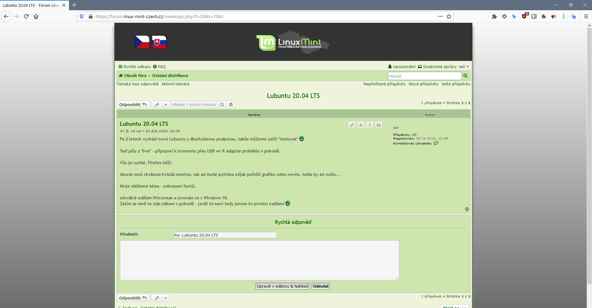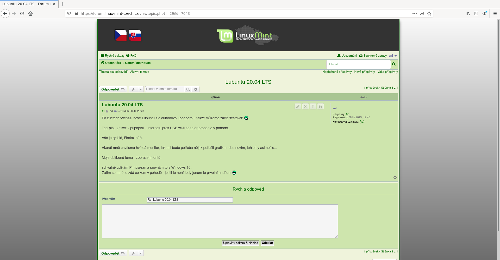 Teď píšu z "live" - připojení k internetu přes USB wi-fi adaptér proběhlo v pohodě.