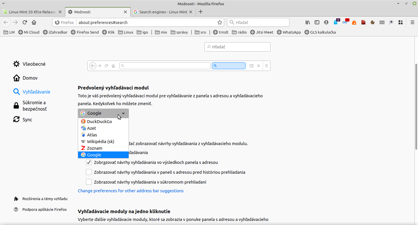 Nicméně jsem dal Mint 20 i na můj MacBook Pro a tam jde vyhledávač změnit normálně.