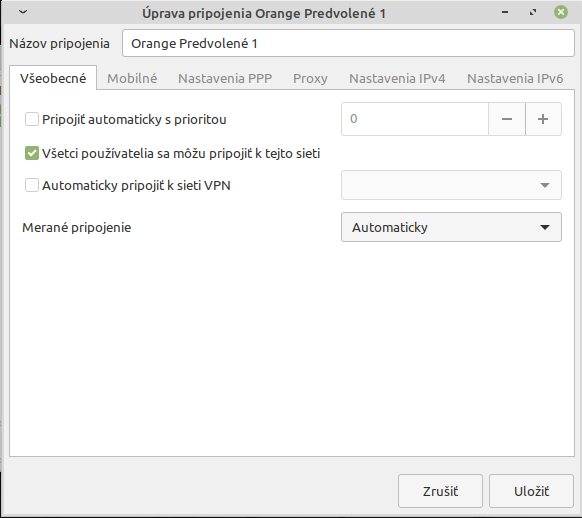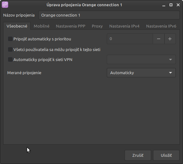 Po pripojeni modemu v Linux Mint 20 ponukne network manager Nove mobilne pripojenie