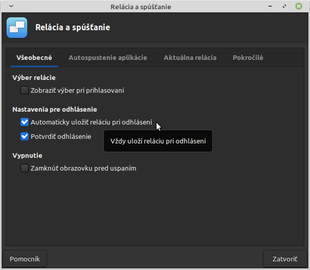 Mozno by si mal hladat nieco podobne v Nastavenia / Relacia a spustanie /
