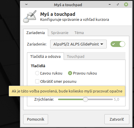 Re: Nastavení touchpadu v Linux Mint 20 xfce