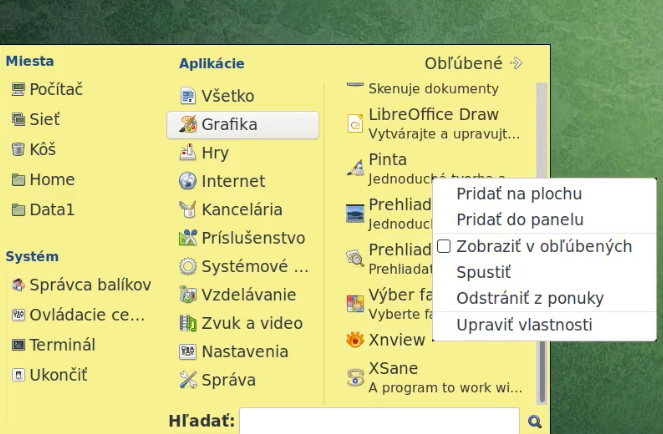 5. V menu si môžeš pravým klikom pridať na plochu alebo do panelu