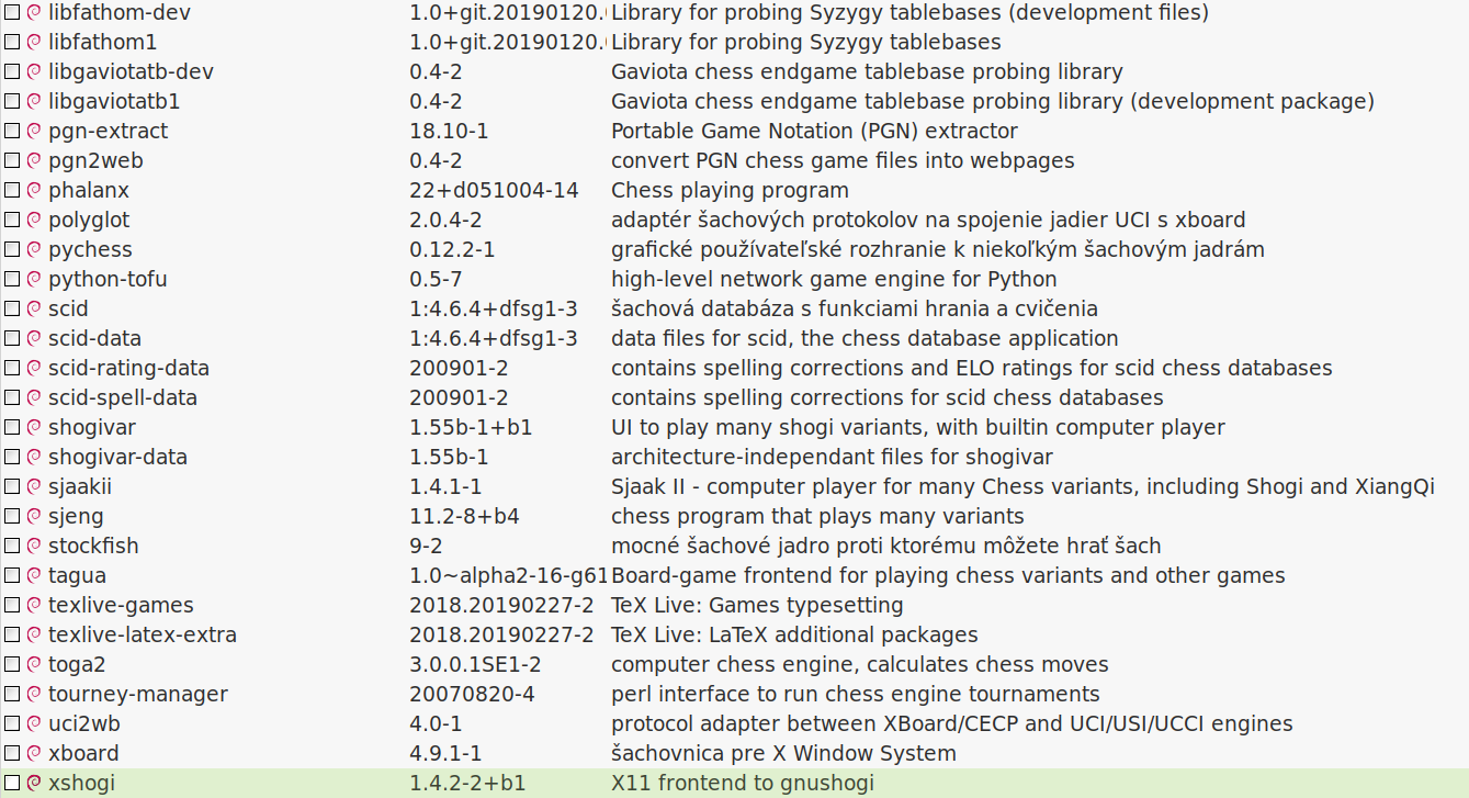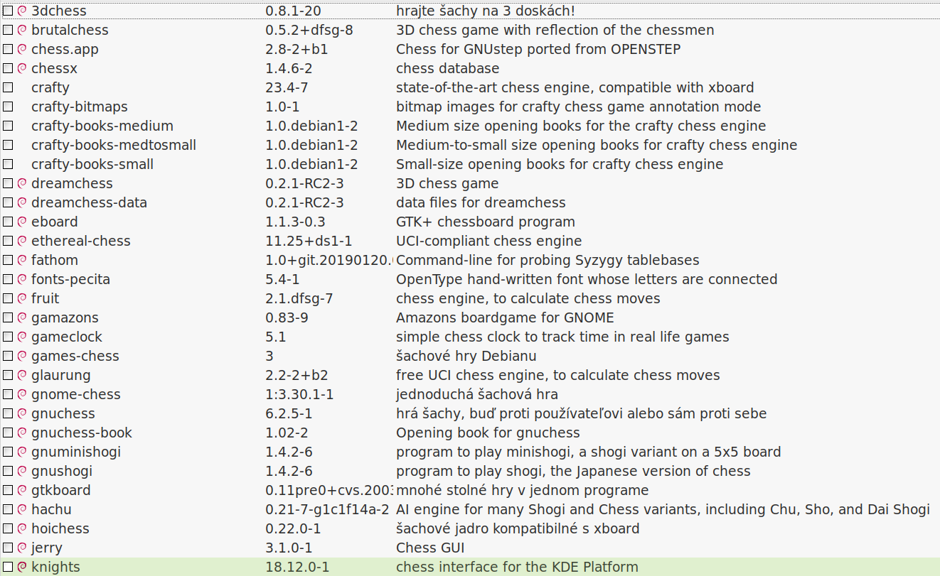 Šachová ponuka synapticu je tiež bohatá, je z čoho vyberať: