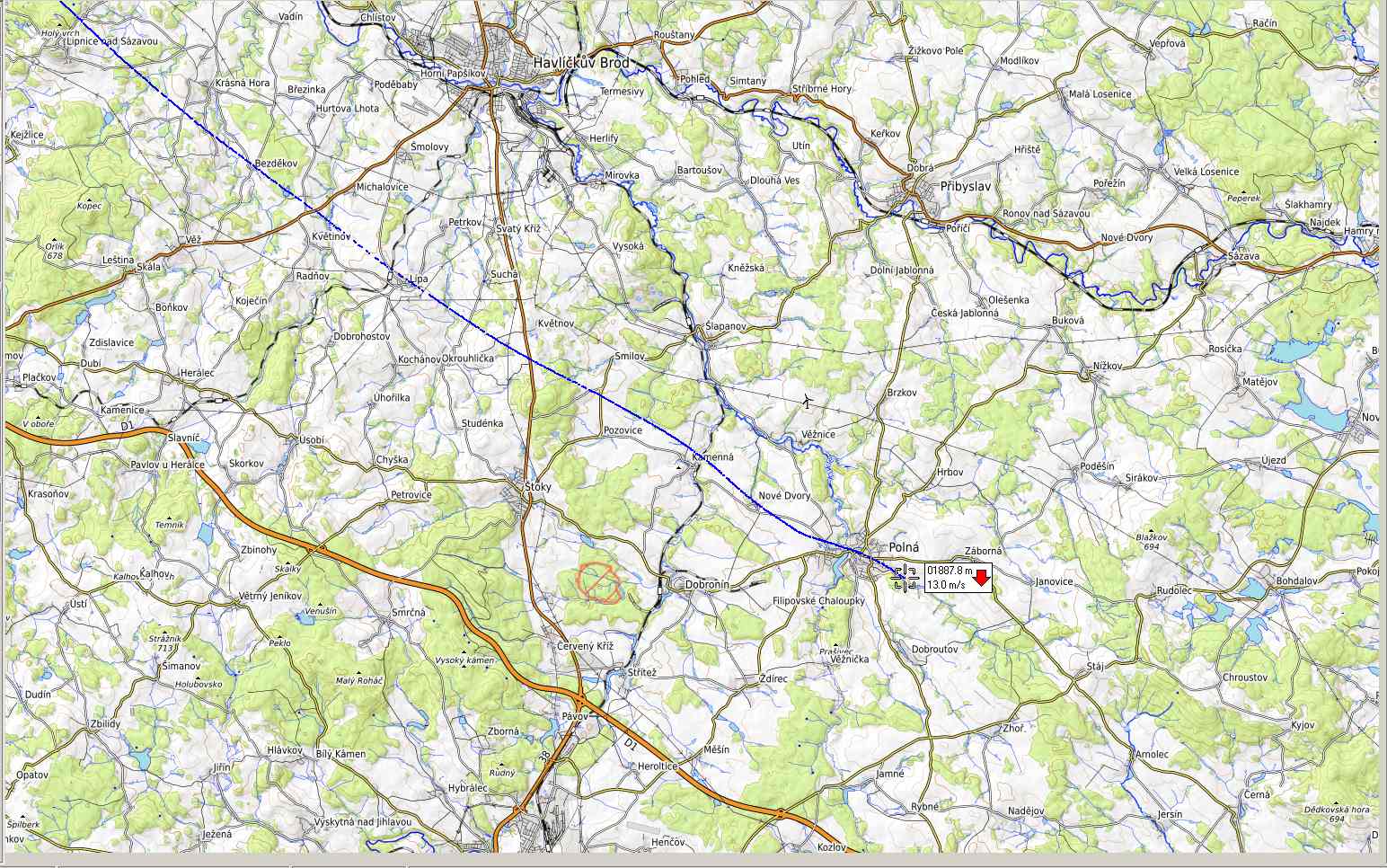 Sonda S3220378 ještě pípá, teď někde dopadá u Radimovic u Tábora, viz printskrýn:
