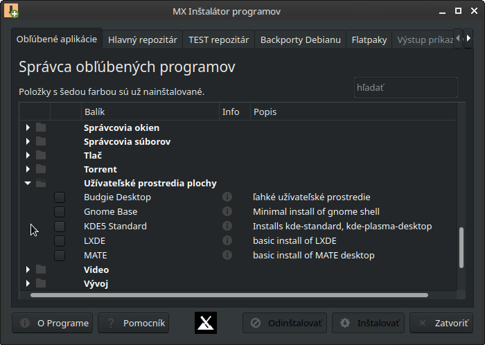mx instalator ma v polozke desktop enviroments / uzivatelske prostredia (cesky neviem nazov) priamo odladene mate.