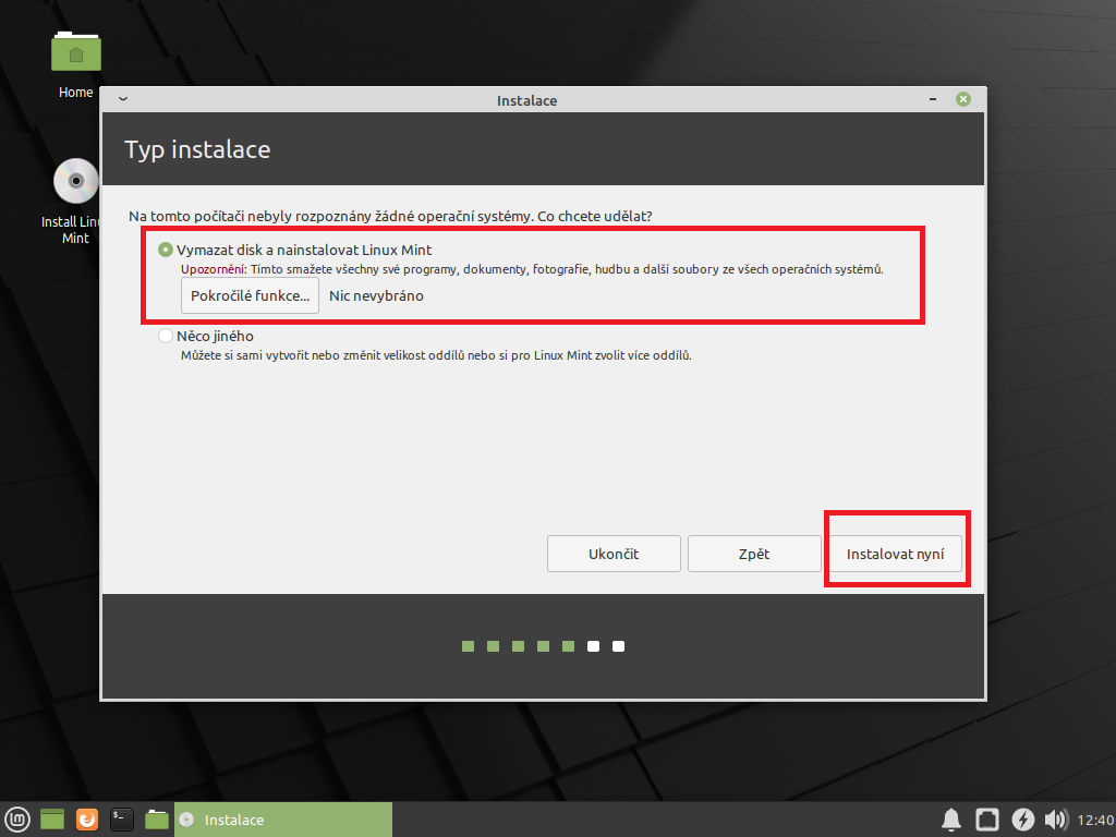Tu instalacku spustit ako Live system - vyskusat, ked nabehne pracovna plocha