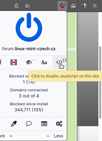Da sa vypnut javascript pre vsetky stranky, cez nastavenia vpravo dole 3 ozubene kolecka.