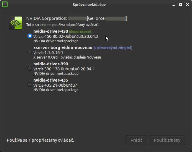 v ubuntu sa tiež ľahko prepína medzi graf.kartami.treba si vybrať správnu grafickú kartu a keď sa načíta tak reštartovať PC.ja som zvykol dať svoju NVIDIA-doporučený ovladáč.obrázok je ako