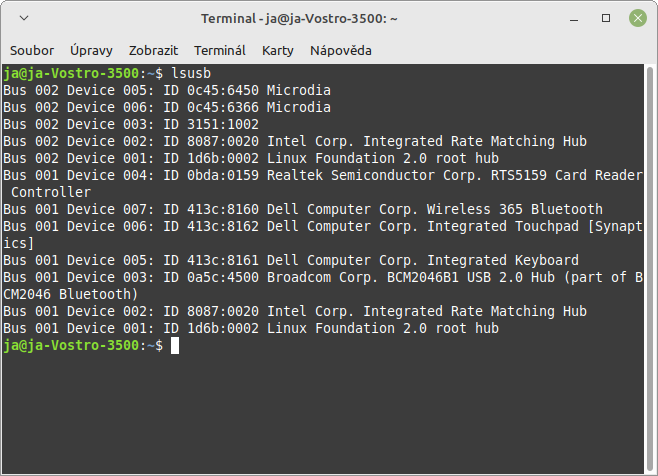 Vypisy lsusb se delaji 2 - jeden pred pripojenim a druhy po pripojeni zarizeni.