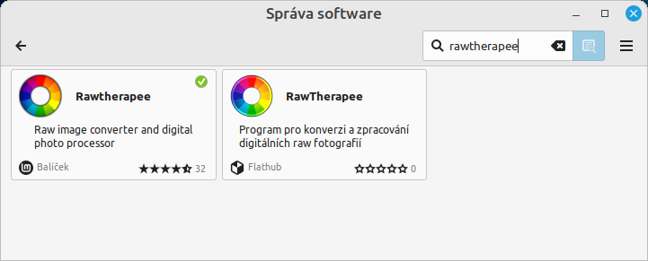 Ten program RawTherapee, co pises, ze je v cestine, to je Flatpak verzia (zdroj Flathub), ina moznost ako nainstalovat okrem klasickeho balickoveho systemu apt.
