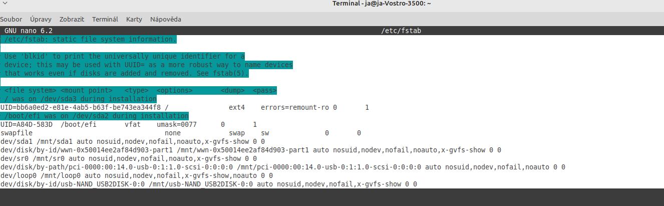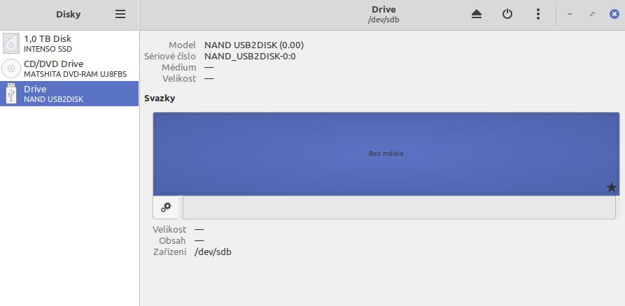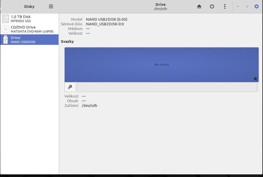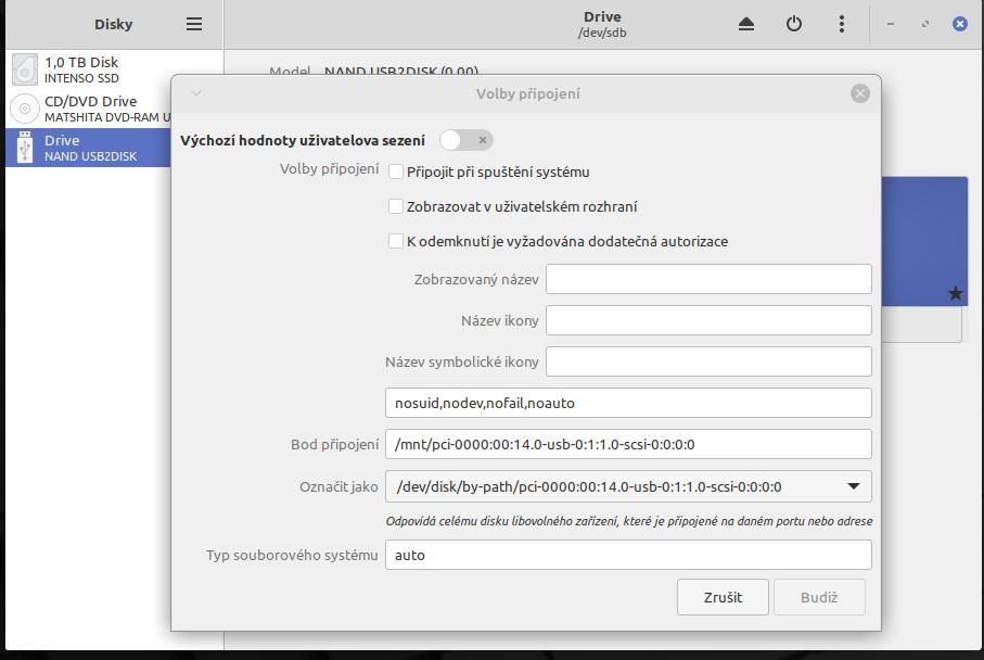Bod připojení /dev/sdb lze nastavit, ale nic to nespraví. Viz obr.