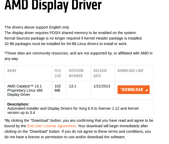 dnes jsem se proklikal k ovladaci AMD Catalyst™ 13.1 Proprietary Linux x86 Display Driver, a ten jsem ulozil do slozky radeon v adresari home, pak jsem v terminalu zadal