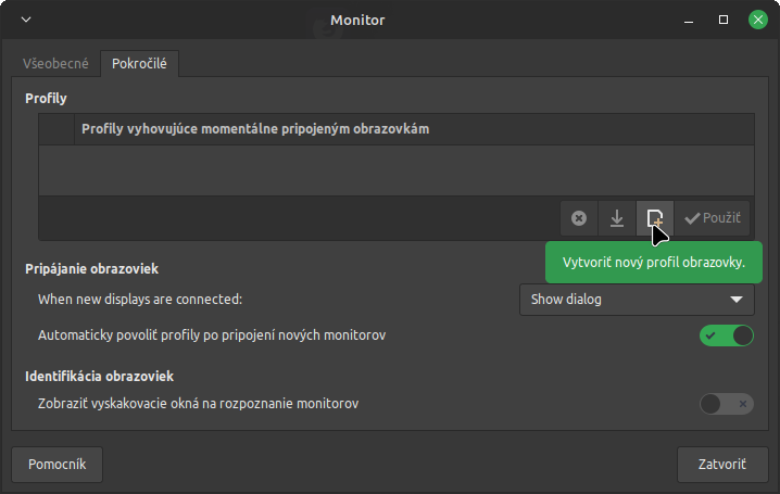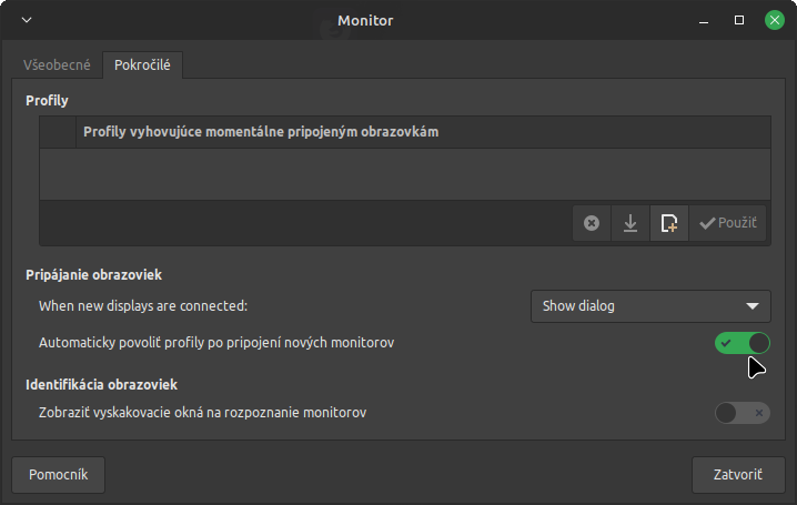 V LM 21.3 xfce tu vidim v nastaveni Monitor na karte pokrocile Automaticky povolit profily po pripojeni novych monitorov