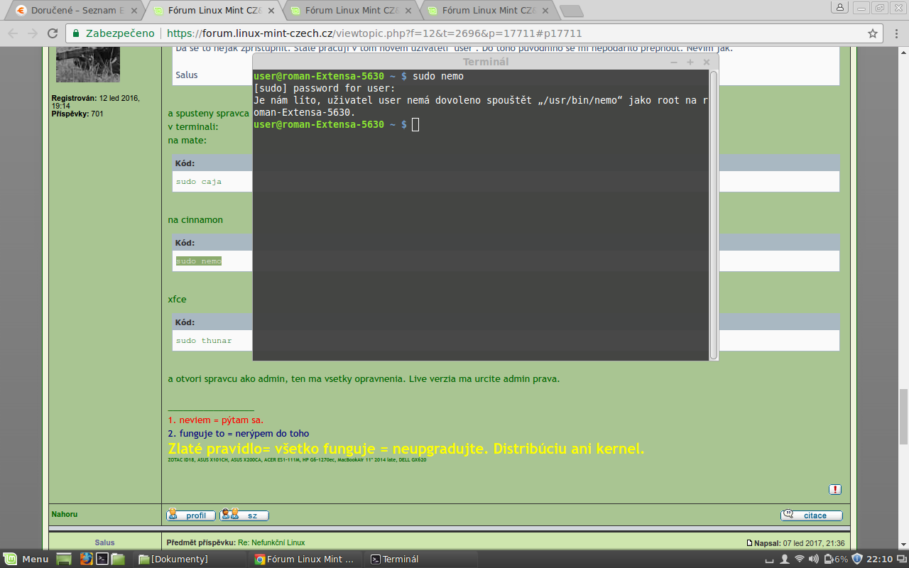 Je nám líto, uživatel user nemá dovoleno spouštět „/usr/bin/nemo“ jako root na roman-Extensa-5630.