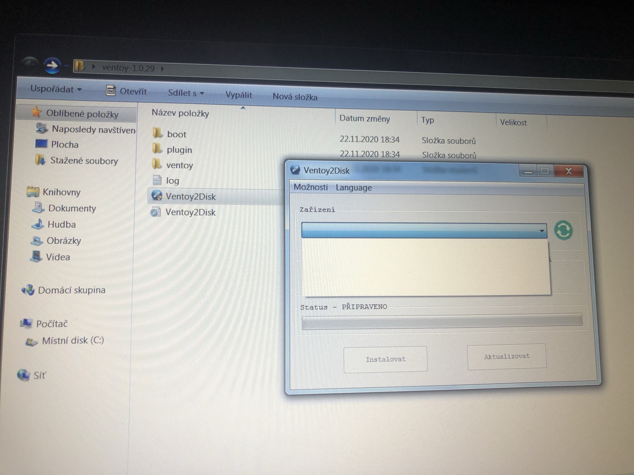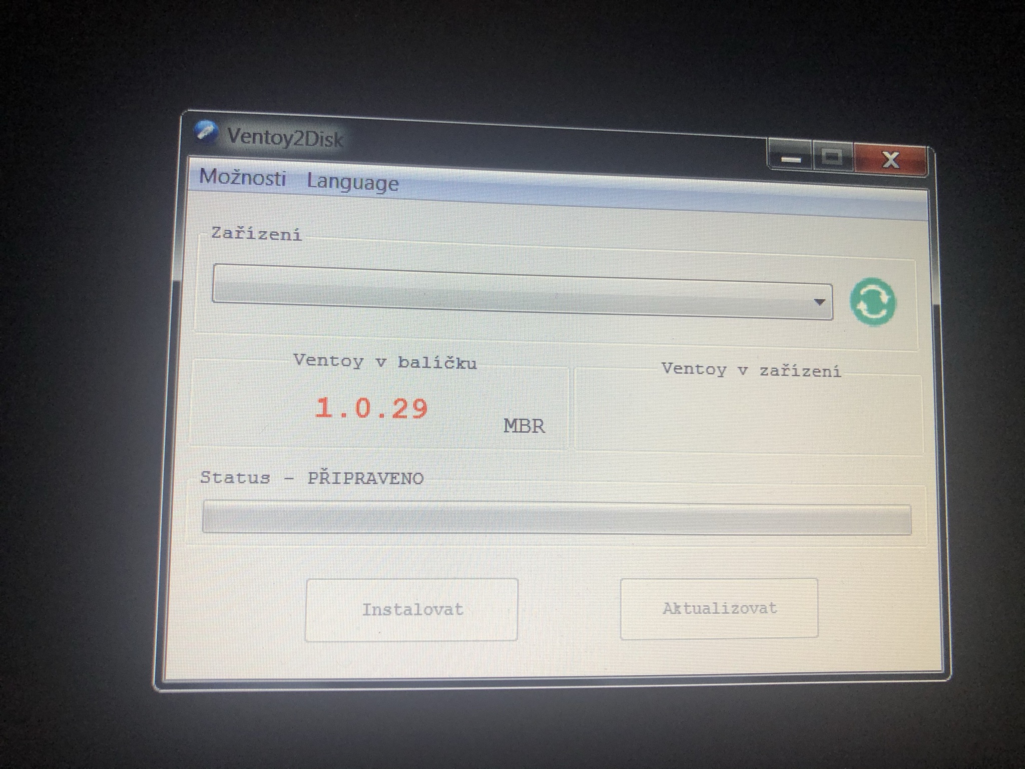 Tak ho odklepneš a program udělá z Flash disku Ventoy instalační disk.