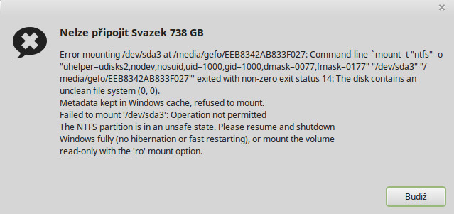 Mám LM 17.2 64bit v dualboote s Windows. Pôvodne w7. Teraz som aktualizoval na w10 a objavil sa problém s pripojením diskov C a D z w10. Keď chcem disk pripojiť objaví sa hláška viď príloha. Skúsil som ísť opäť do w10 a normálne ho vypnúť, ako sa píše v tej chybovej hláške. Potom sa LM disky pripojiť dali, ale len dovtedy kým som znovu nešiel do w10. Odvtedy každý ďaľší pokus končí chybovou hláškou. Ďakujem za prípadné rady.