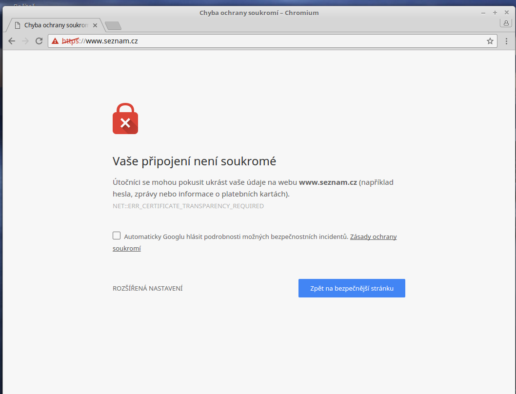 Vaše připojení není soukroméV nápovědě ke chromu jsem se dočetl, že to můžou způsobovat některé doplňky, jenže já tam žádné nemám.