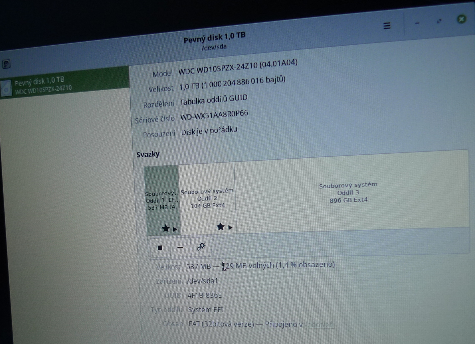 Předtím jsem kopíroval z SD karty FAT32 na interní HDD 1TB. Ten je rozdělen na 100GB sda ext4 primár a 900GB sdb ext4 a taky primár(při instalaci OS na fungl nový HDD, jsem ten HDD rozdělil. Nejprve jsem zmenšil primár na 100GB a pak přidal nový oddíl 900GB. Tento nový oddíl bylo možné udělat jen jako primár).