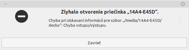 Do NTB som nainstaloval Mint 20 a po vlozeni USB kluca som dostal hlasku ktoru neviem preco spochybnujes. Ked som ju odklikol, tak USB kluc v nautiluse sa tvari prazdny. Nedokazem tam ani vytvorit ziadny dalsi adresar a ani nic nakopirovat.