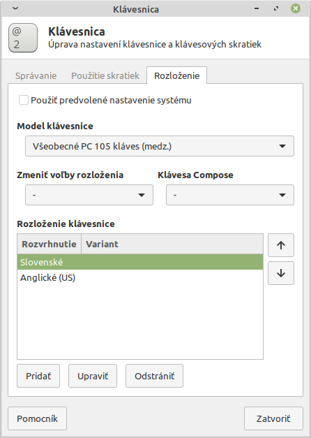 Nastavenie klavesnice
