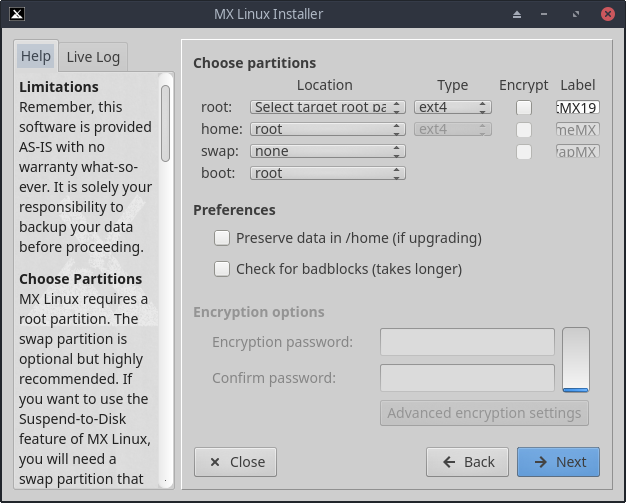 verzii MX Linux - lebo tam bol klasicky debianovy instalator ale mozno to ide aj teraz)