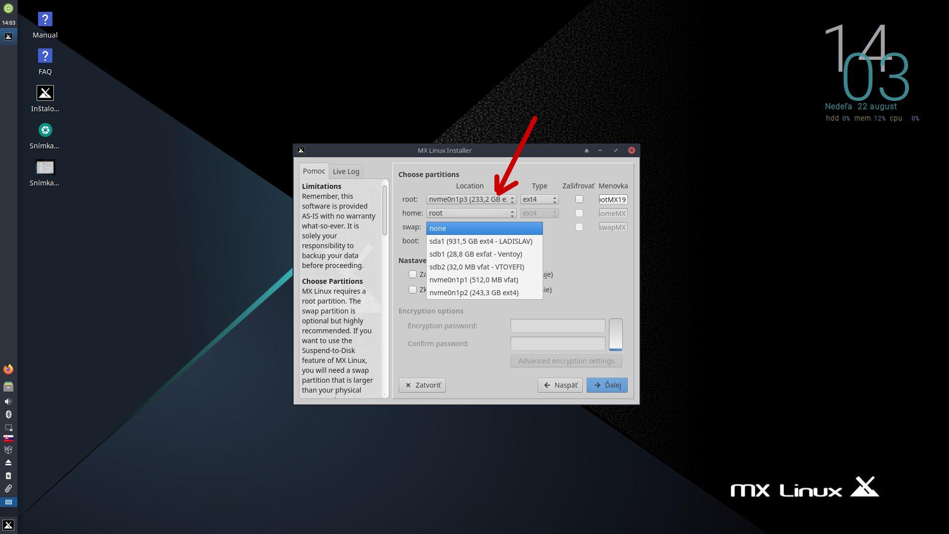 ...druhy oddiel,ktory je oznaceny ako trety,je budgie...ktoru som chcel nahradit s mx...prave to rozdelovanie som chcel obist,ze ked urcim oddiel v instalatore,tak to tam nainstaluje...dalsia prekazka by bola poradie bootu,ktora sa da eliminovat s grub customizerom,ale len docasne,pokial sa kernel neaktualizuje...alebo v etc/default/grub-e urcit poradie bootu,zas neviem mx ako reaguje na taky zasah grubu...bo prvy musi vzdy,a za kazdych okolnosti nabehnut MATE...