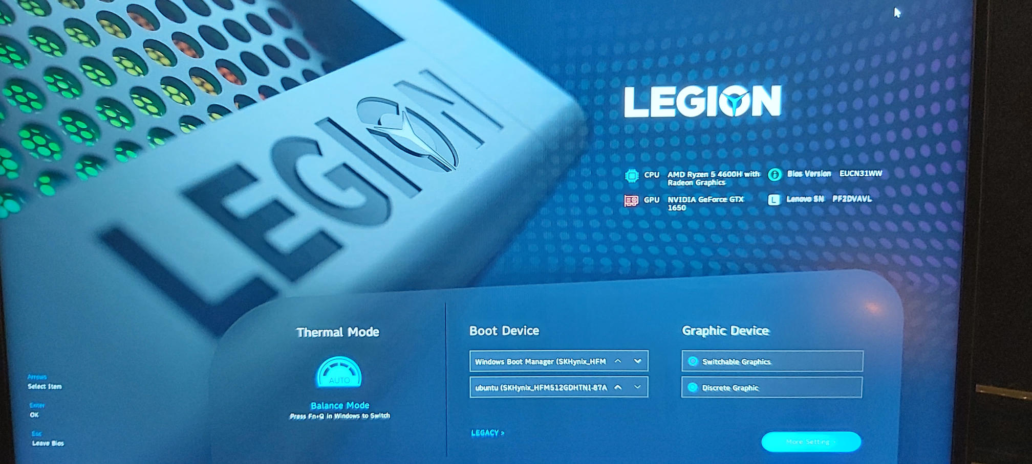 Ahoj. Mám notebook Lenovo Legion AMD Ryzen 5 4600H with Radeon Graphics a pak je v něm ještě druhá grafika . NVIDIA GeForce GTX 1650.