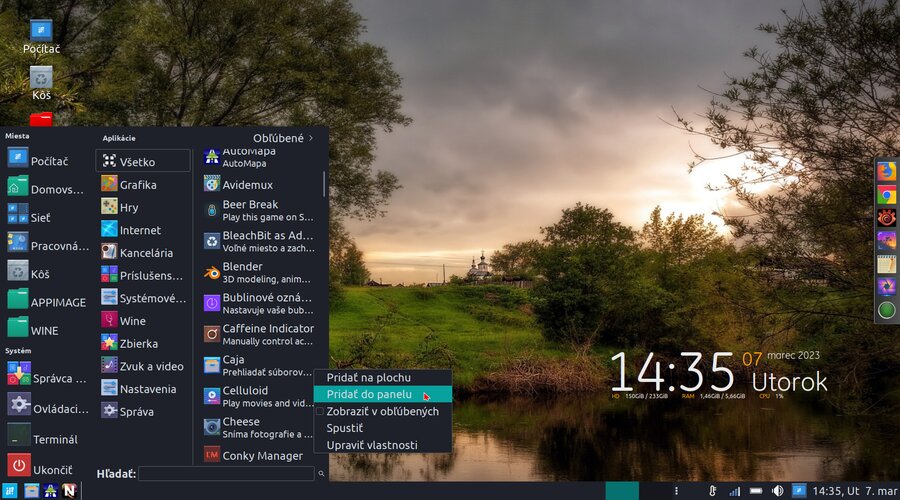 Rád bych zbrzdil a oboustranně vynechal tu útočnou notu. Tedy věcně:RadekD píše: 07 bře 2023, 07:59 Nevím jak v Mate, v Cinnamonu stačí v hlavním menu kliknout pravým na aplikaci a vyskočí nabídka mj. "Přidat na panel...". Do panelu si ikony přidává každý sám, podle toho co potřebuje. Ani ve woknech nemáš na panelu automaticky všechno, byl by z toho jen zmatek.
