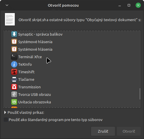 Poprosím "menom", zda-li by mohl poradit, jak přidat terminál do seznamu programů v dialogu pro asociaci. Nebo kde hledat jeho spouštěcí soubor?